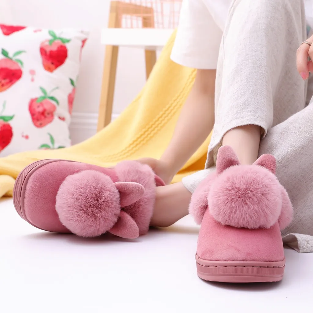 شتوية منزلية للنساء آذان أرنب فروي شباشب داخلية أحذية مريحة ناعمة