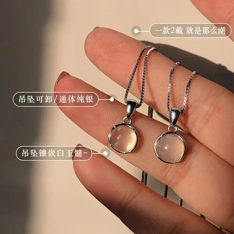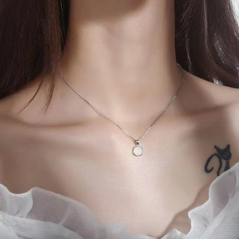 قلادة بدلاية مستديرة مطلية بالفضة للنساء ، قلادة فاخرة ، سلسلة ترقوة ، سحر قصير ، أبيض ، مجوهرات أنيقة