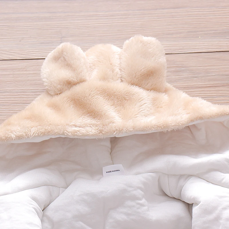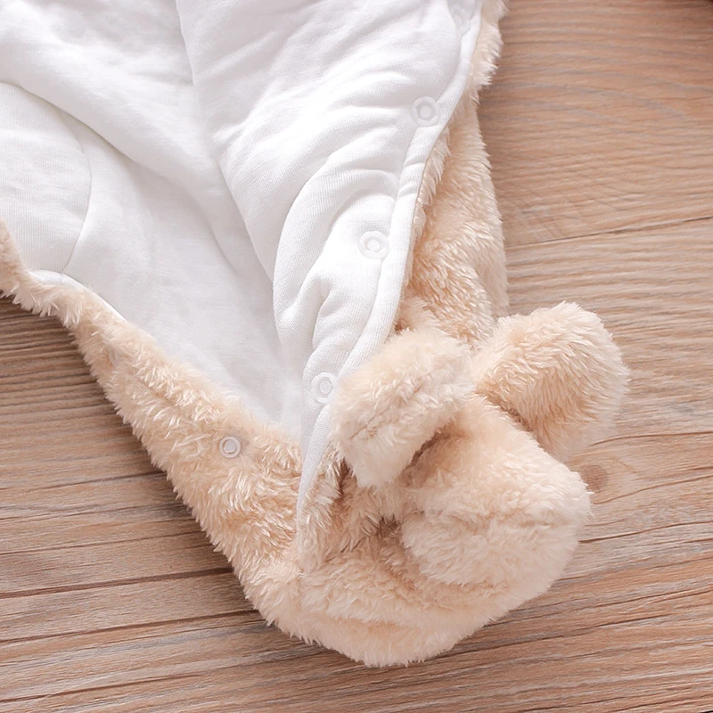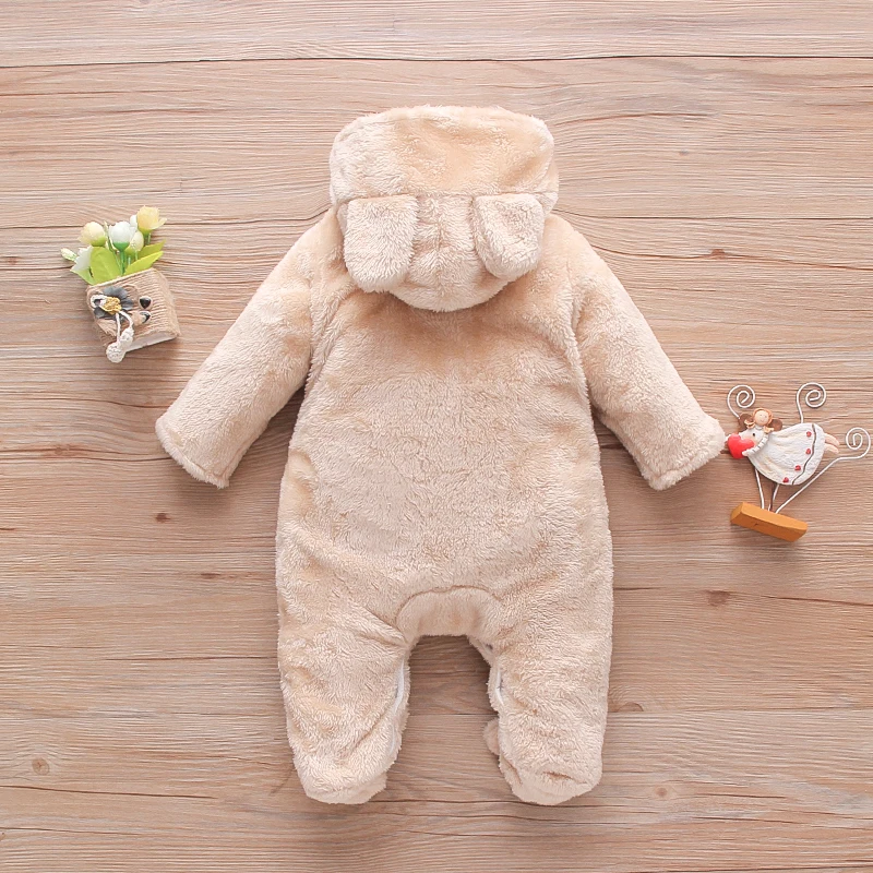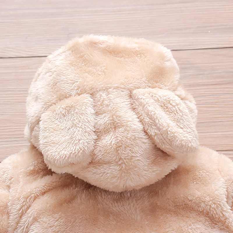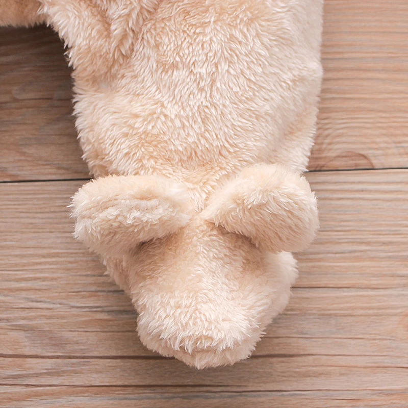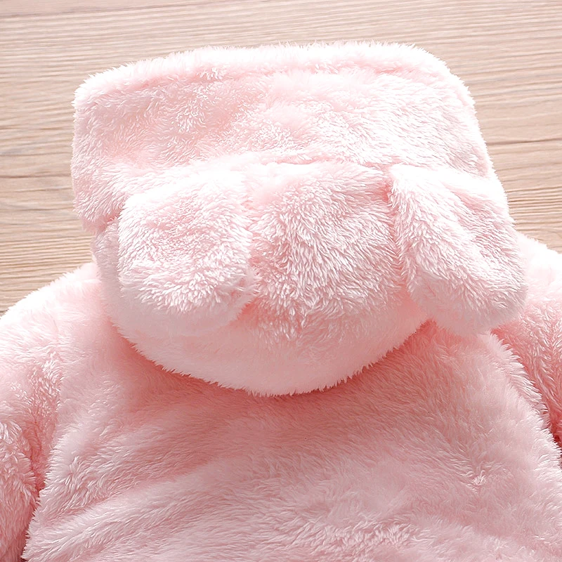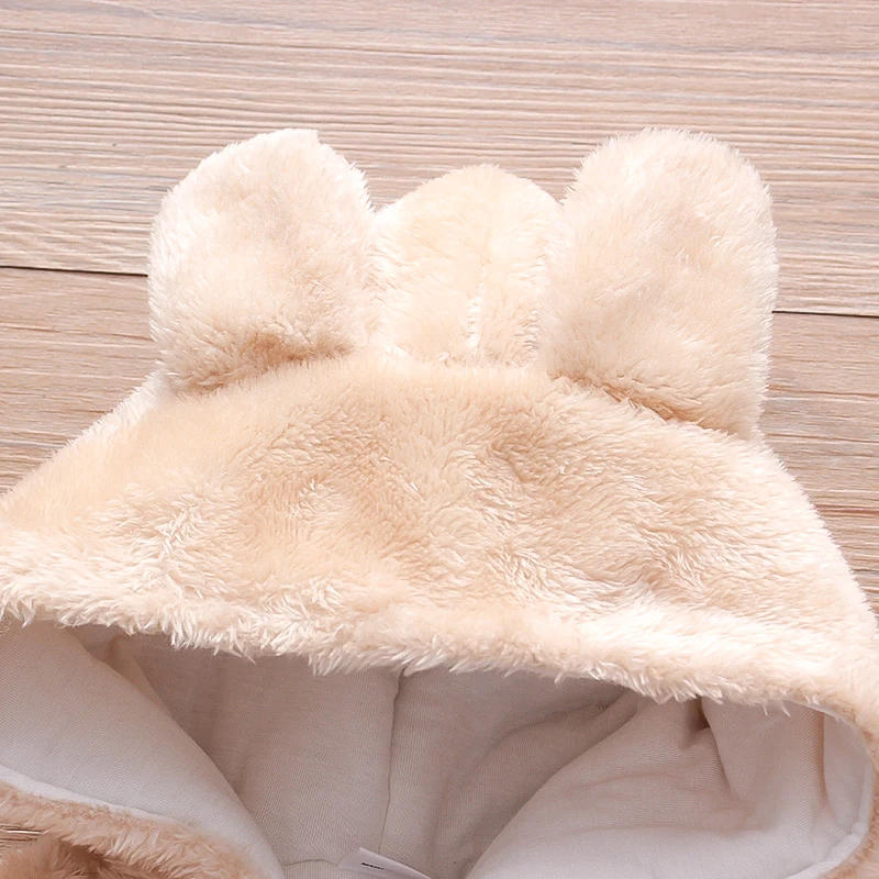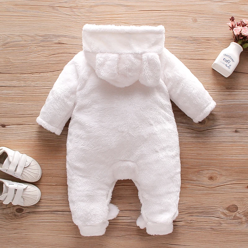 ملابس اطفال بنات سادة صوف أرنب بقلنسوة قدم/اكمام طويلة بدلة اطفال للجنسين ملابس اطفال شتوية لحديثي الولادة